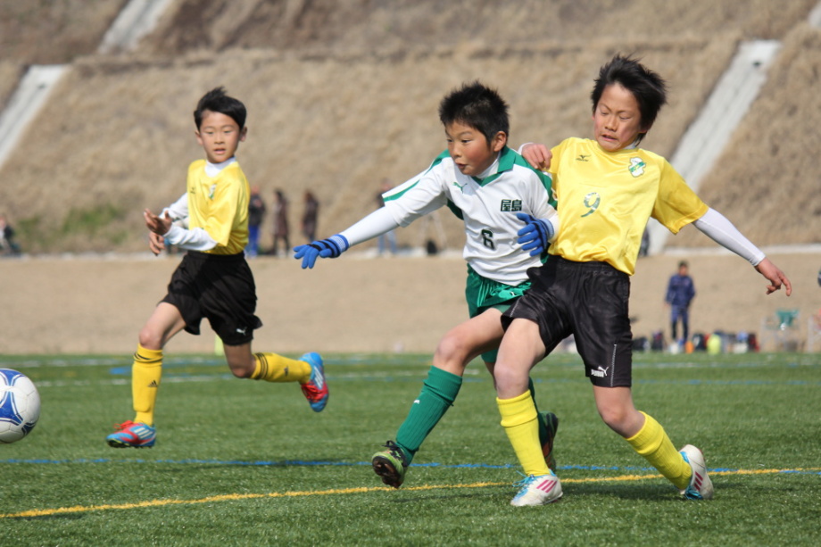 | コメント | 常盤戦は、今までできなかった「スペースを生かしたパス」、「こぼれ球への詰め」など、諒君を中心に屋島ペースで試合運びができました。みんなで勝ちえた5得点はすばらしい。その中でも、右中盤から、諒(低いクロス)→智貴(中央でスルー)→大和(左サイド激走からタイミングばっちりのシュート)と展開した場面は印象に残りました。 香南戦は、終始主導権を相手に握られながらも、拓磨君のトップでの踏ん張りから諒君への絶妙なアシスト!!(本人いわく、「諒が見えた」)。諒君のシュートも鮮やかでした。4年の川又君・越智君の堅実なプレーも光り、みんなで耐えて貴重な勝点を得たと思います。コーチから指導されたことを忘れず、この次も頑張れ、屋島Dream!! |