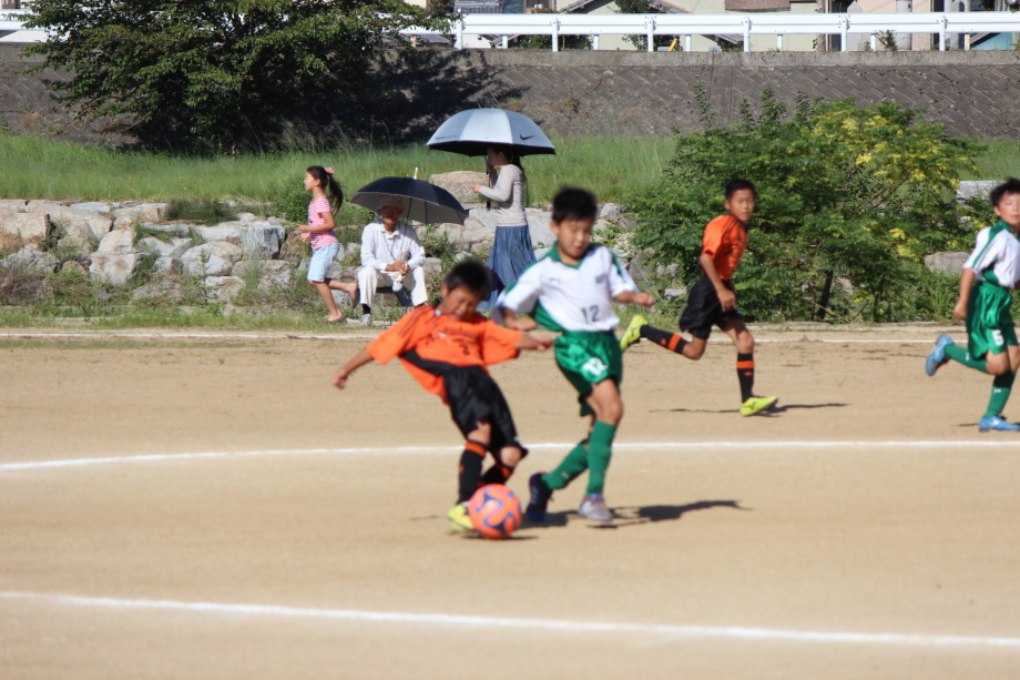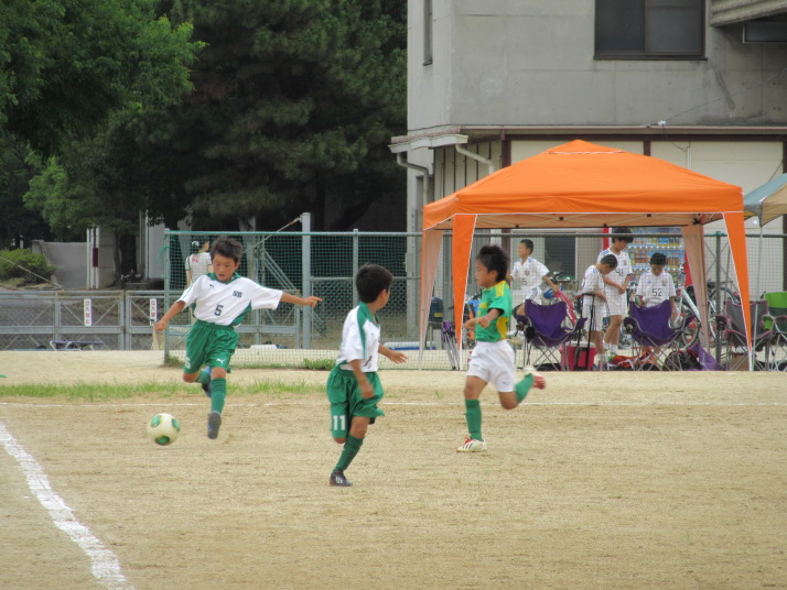 | コメント | うだるような暑さの中、熱い試合が繰り広げられました。 二試合とも、はたから見てる感じでは大接戦でしたが、いつの間にか失点していました。 しかしながら、5年生が中心のこの大会、親ばかかもしれませんが、 子供たちの今後の活躍を期待させるものだったと思います。 頑張り有り、疲労あり、体調不良有でしたが、 最後のフレンドリーでは笑い有で初日を終えることができました。 保護者のみなさま、暑い中お疲れ様でした。 そして、お忙しい中、駆けつけてくださった村井コーチ、ありがとうございました。 | |||