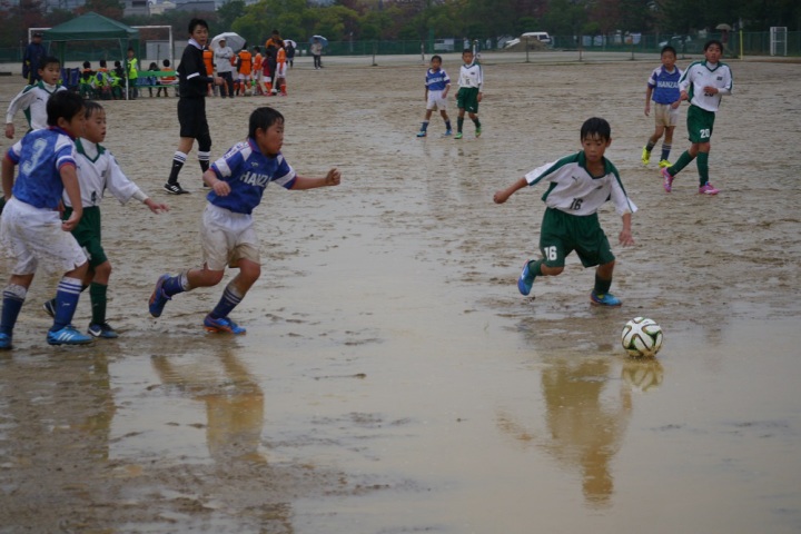 | コメント | 先制されても、頑張ってよく追いついた。 だけど、あと1点がほしいと思う試合が多かった内容でした。 乾いた時と、雨の時のグラウンドのコンディション、 ボールの動きかたの違いなどいろいろ勉強になったのではないでしょうか。 | |||