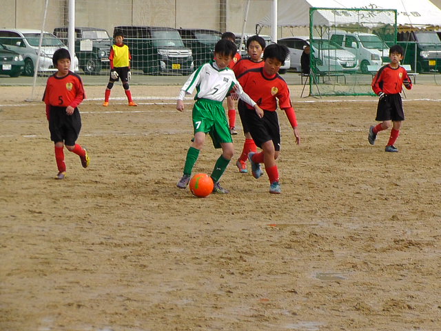 | コメント | 西風が強く吹く厳しいコンディションの中, いよいよあなぶき杯が始まりました。 今大会はわれらU-10にとって,1学年上のU-11と,さらに県外の強豪チームとの対戦という大会で, これまでのリーグ戦で培ってきた力や,決してあきらめない強い心が試される大会となりました。 試合は初戦からスピード,テクニックで上回る強敵との厳しい戦いが続き,苦しい試合になりましたが, それでもみんな必死にボールを追い,相手に食らいついていきました。 ただ,1対1で競り負けるとどうしてもボールばかりを追かけてしまい,マークが甘くなり, ゴール前に入れられたボールに合わされ失点という苦しい展開が続きました。 それでも,試合終了までみんなあきらめず走り,最後のだいち戦では見事なセンタリングからのシュートが決まるなど, 明日につながる場面もたくさんありました。3連敗で終わった予選リーグですが ,明日は3・4位グループでの戦い。きっと今日の頑張りが生かされると思います。 まずは1勝、そしてさらに2勝・3勝めざして頑張りましょう。 本当に寒く体の芯まで凍えるような1日でしたが, コーチ・保護者の皆様早朝からの準備・運営・応援ありがとうございました。 | |||