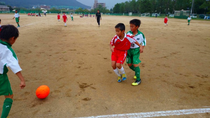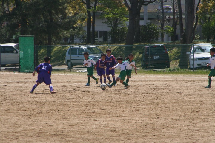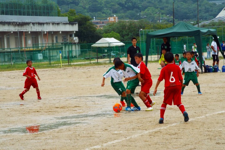 | コメント | 「DFはラインをあげて中盤とのスペースをなくす」「両サイドMFは攻撃時にサイドへひらく」「センターMFはボールを奪うと逆サイドをみる」という課題の中、雨の2試合を頑張りました。 丸亀城南との1試合目、「人をみて!仲間をみて!」ボールばかりみていた頃にくらべて、少しずつまわりを見ることが出来るようになったかな?!4−0で勝利。 丸亀城東との2試合目、2点の先制点をとられましたが、自分達で2点取り返りました。気持ちで負けないことも、以前に比べて強くなってきていると思います。 声を掛け合うことで、仲間と意志疎通することや元気をもらうことを学んで下さい!大西コーチ、保護者の皆様お疲れ様でした。 | |||