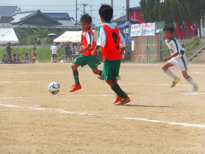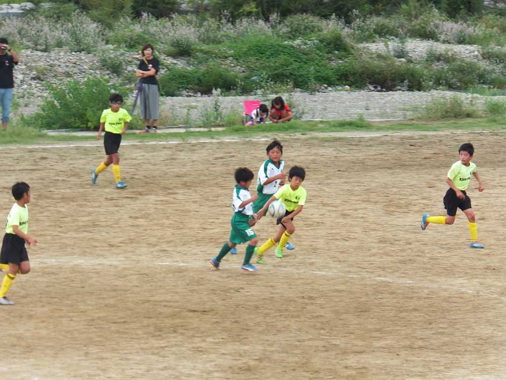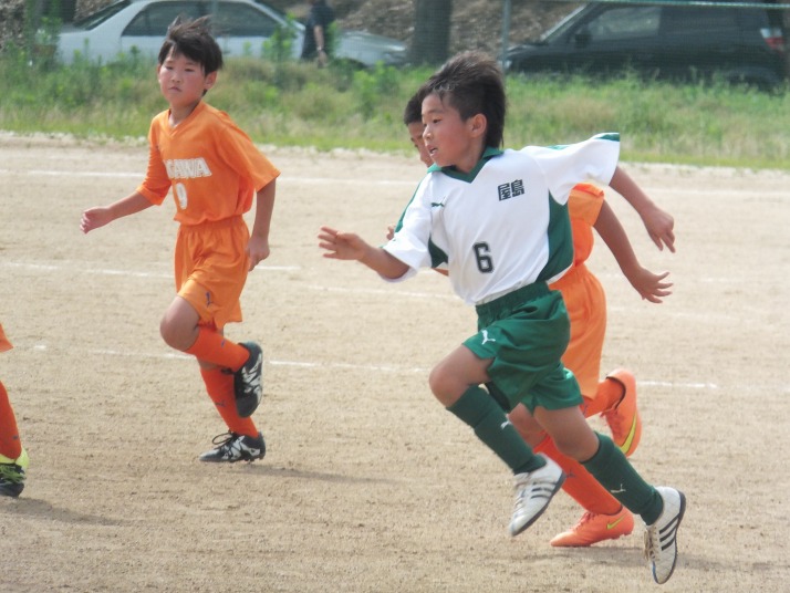 | コメント | 本日の試合は、近付いている台風の影響で涼しいと思っていましたが、真夏のような暑さと湿気の中でのハードな3試合となりました。 1試合目の前半は調子が出ず、先制点を取ったものの、その後2点入れられてしまいました。後半にやっとみんなの調子が戻ってきて、 終了3分前になつめのヘディングで同点に持ち込むことができ、何とか引き分けにて終了することができました。 その後、大西コーチから「ポジションを守っているのではない。相手をしっかり見て、攻める時はどのポジションからもチャンスを生かし、 守る時は皆でしっかり守る」と言われた言葉通り、2試合目・3試合目は、DFのようすけとゆきが1点決め、守る時には、 しっかりとみんなで守れていたので失点がなかったと思います。いつも1試合目はテンションが低いので、最初からテンションを上げていこう! パスする時には大きな声で名前を呼び合おう!試合の間の声掛けがもっとできるようになったら、強くなると思います。 暑い中、大西コーチ、藤井アシスタントコーチ、保護者の皆様お疲れ様でした! | |||
