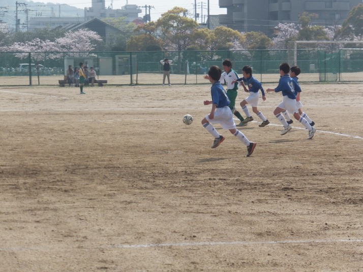 桜が満開で 屋島のグランドも花見シーズン真っ只中に 新四年生の初試合のリーグ戦 今回は 四人がU 11に 応援に行った為 9人で 試合に望むことに! 四年生になった子供達 なにか違ったのか 第1試合 紫雲戦は 17対0で 大差で勝利! 続く 付属戦も 先程の勢いで 2対0で勝利! みんな 個の力で戦えていたと思います! しかし まだまだ 黙々と試合をしている子供達 もっと 声を掛け合ったら もっと 良くなると思いながらも 本当に みんな 頑張っていたと思います! 今日は 朝早くからの準備 試合と 大西コーチ 父兄の皆さん お疲れ様でした! | |||