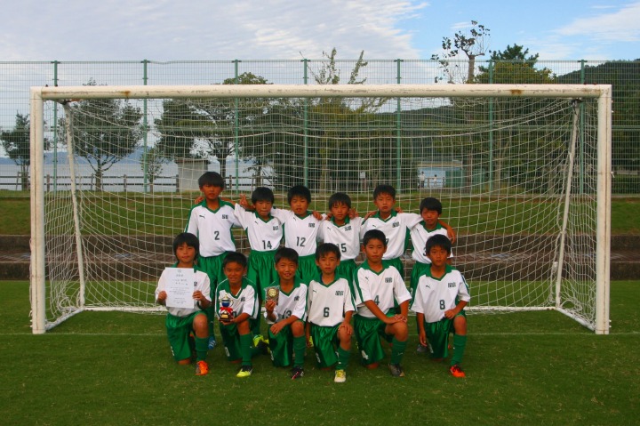 | コメント | 初めて参加したオータムカップ。 4チームトーナメント方式です。3位以上は表彰されるため、円陣・かけ声をバージョンアップさせ、気合い十分に臨みました。結果は3位でしたが、トロフィーを貰えて、とても喜んでいました。 強豪坂出との試合は何度もシュートを打つのに入らず、決定力不足を感じました。前に蹴っても仲間がいなければ敵のボールになってしまいます。キープしたボールを大切にして、声を掛け合って仲間につないでいこうね! ゴールポストにお願いしていたキーパー大地。サッカーの神様は見ていたよ。優秀選手賞おめでとう! 大西コーチ、藤井アシスタントコーチ、保護者の皆様、お疲れ様でした。 | |||