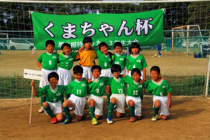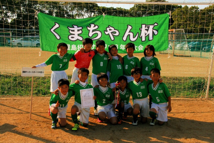 | コメント | くまちゃんカップの決勝リーグです。決勝進出をかけた1試合目、ゆうごのシュートが決まった瞬間、みんな大歓声でした。あとは、みんな一生懸命走りなんとか1点を守りきり決勝進出!! 決勝戦は、みんな、今まで経験したことのない大応援団の中で、緊張していたね。いつもと違う環境の中で強豪丸亀FCに負けてしまいましたが、とても貴重な経験ができたね。でも準優勝おめでとう。 最優秀選手賞には、藤本翔馬君が選ばれました。 2日間、くまちゃんカップの運営に朝早くから保護者のみなさん、大変お疲れさまでした。里石コーチ、石川コーチありがとうございました。U-9のみんなよく頑張ったよ。おめでとう。 | |||