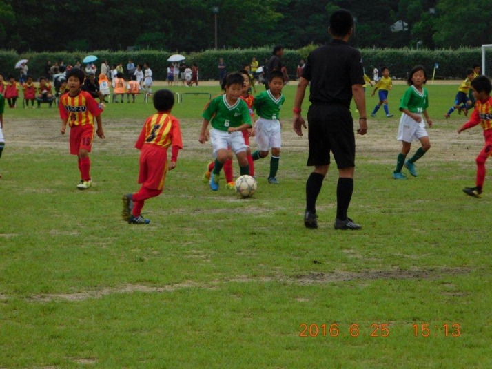 | コメント | 雨の降る中、U-9夏季サッカー大会に参加しました。 芝生に雨水が溜まるピッチコンディションのため、パス、ドリブル等ボールが止まってしまいました。 予選3試合で1分2敗という結果で、決勝トーナメントには進めませんでしたが、良い経験ができました。 今後の選手の成長に期待します。コーチ、保護者の皆様お疲れ様でした。 | |||