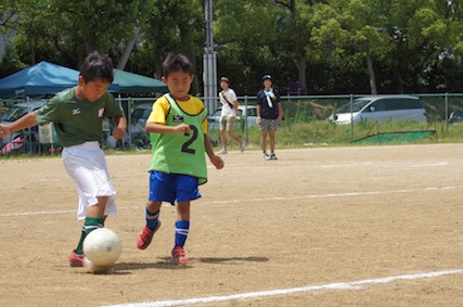 | コメント | 今回の課題は守備をしっかりみんなでやろう!でした。点を入れる事に執着して、 ゴール前で固まると相手に大きくクリアされた時にどうなる?など攻撃するだけではなく常に相手の動きも意識しながらプレイする事を学びましたね! 疲れて守備をサボりがちになると相手に点を取られる事も自覚したようでした!でも暑い中、みんなよく頑張りました!また頑張っていきましょう! | |||