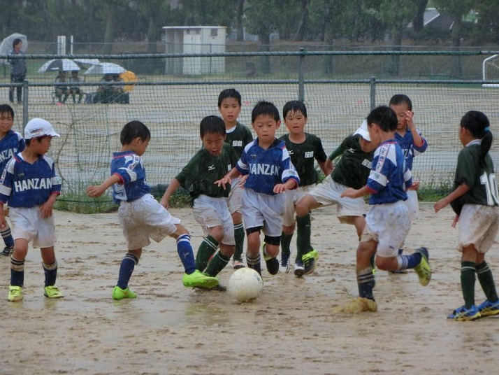 | コメント | 朝から続く土砂降りの中ダブルフィールド制3試合を元気いっぱいに頑張りました。 濡れて滑りやすい最悪なグランドコンディションの中、果敢にゴールを狙う姿勢が素晴らしかったです。 コーチ、保護者の皆様、いつも以上に大変な試合でしたがお疲れ様でした。 | |||