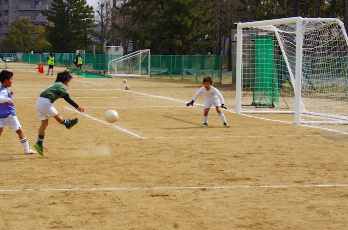 | コメント | 今回は一人一人にポジションを与えた上で、コートを左右2つに分け、左(右)サイドにボールがあるときは右(左) サイドの選手は絶対にボールに行かない、というルールを決めて試合に臨みました。はじめは戸惑いながらプレーしていた子供たちでしたが、 試合を重ねるにつれ、少しづつ逆サイドにいるフリーの選手にボールが回るようになり、チャンスを作れるようになってきました。 これを続けることでもう一段階強くなれると思います。あと、シュート練習も頑張ろう! | |||
