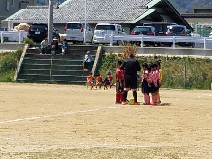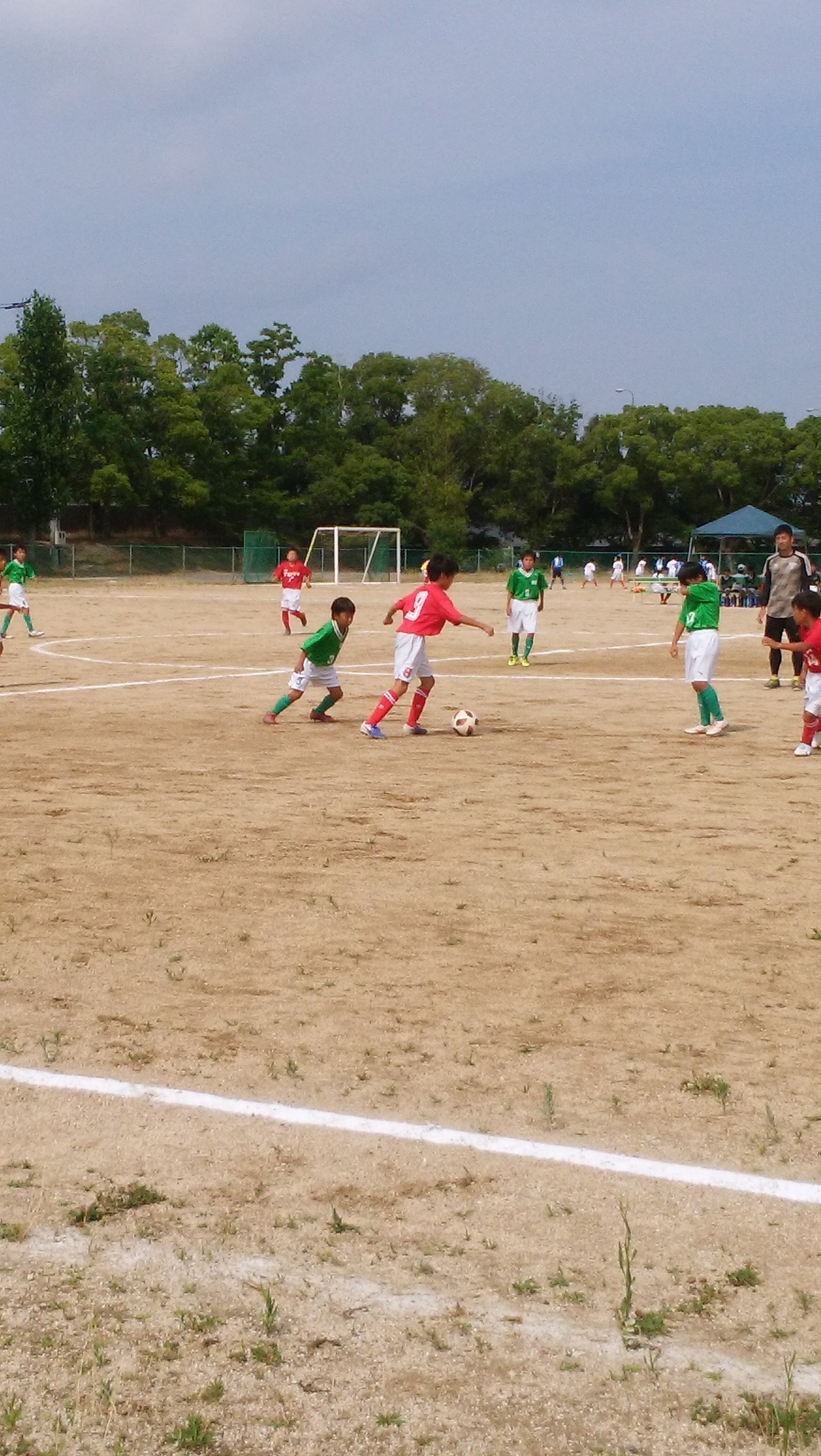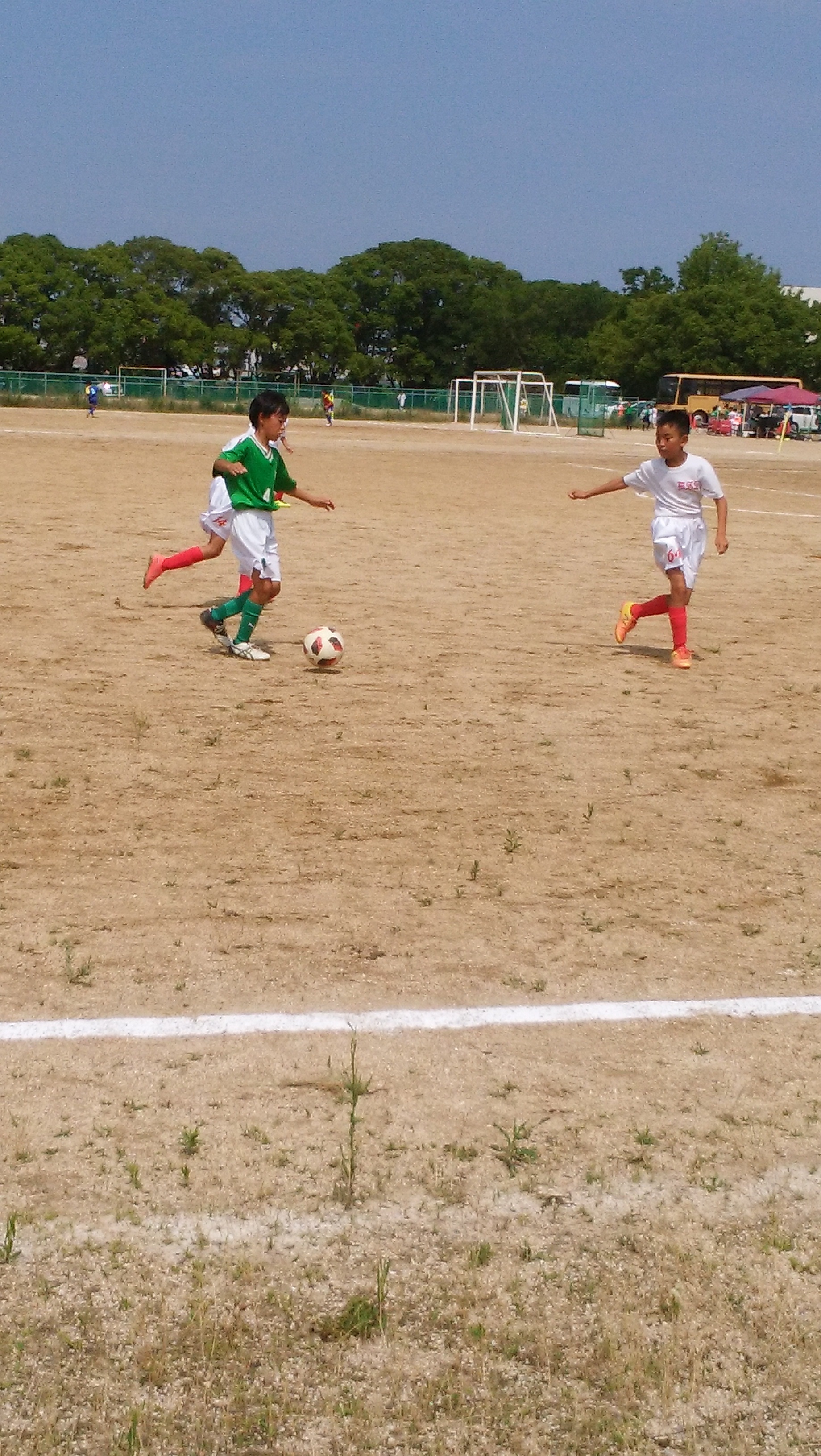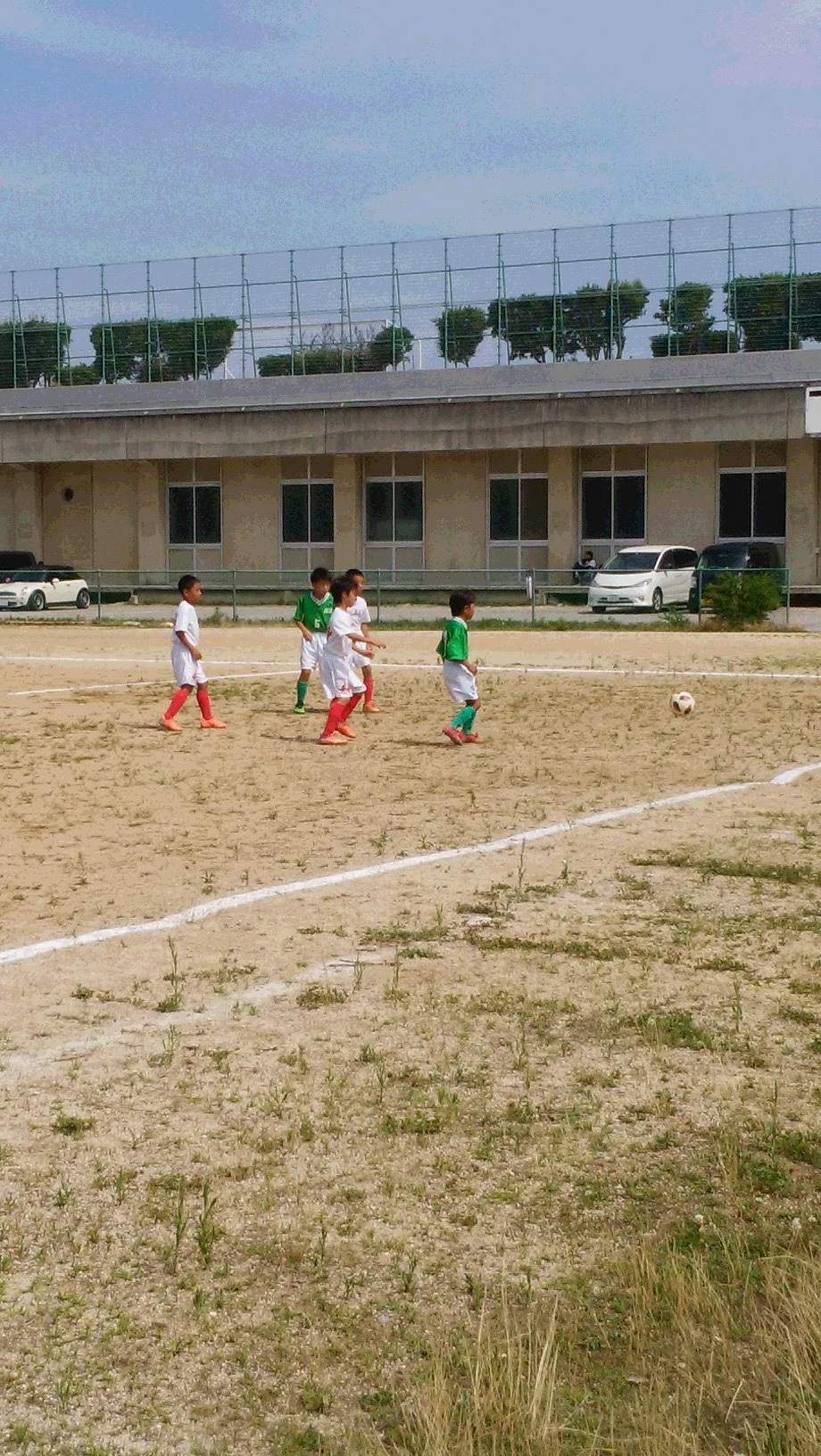 | コメント | 台風の影響か?強風の中の試合でした。 1試合目は相手も小柄で攻めたり、守ったりの展開で決定力を欠き引き分けに終わりました。 2試合目は相手が大きく終始攻め込まれる展開にだんだん足が止まり、集中力が切れてきた感じの試合展開でした。 パスしたら次のスペースに動く、攻守の切り替えを早く、予測、等々たくさんの課題が見えた試合でした。 | |||