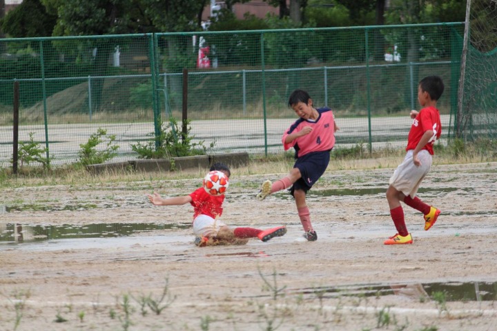 | コメント | 昨日の疲れが足に残ったまま練習試合2日目、初戦は点も入り積極的にゴールに向う姿勢が見られました。降りしきる雨の中、皆よく頑張りました。雨が止んだ午後はうねるような暑さと水溜りに皆、苦戦していました。疲れが出てきた後半のニ試合は足も止まり動きも鈍かったです。きつい時も周りを見て空いてるスペースにボールを出し、点に繋がる動きが出来たらと思います。2日間頑張りました。お疲れ様でした! | |||