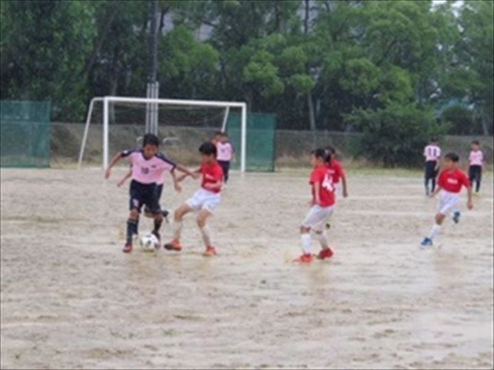 | コメント | 大雨でコンディションの悪いグラウンドでの試合となりました。いつものようにボールを蹴っても前に飛ばず、ドリブルもパスも思うように行かずに大変な思いをしたことでしょう。豪雨の為、試合数が1試合減りましたが、最終戦では水溜まりを避けながらゴールに向かおうとする姿が見られました。これからの試合、どんなコンディションになるかわからないので、その時その時でどう動いていけば良いかを各自が考え素早く動けるようになって欲しいと思います。コーチ、保護者の皆様、雨の中お疲れ様でした! | |||