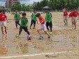 たくさん雨が降る中、懸命にがんばりました。なかなかボールは前に進まず、走るのも大変なグラウンド状態。