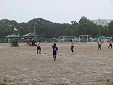 前半は互いに得点なしでむかえた後半。必死に守っていたが、一瞬の隙をつかれて、失点してしまい、そのまま試合終了。 先に得点が入ると、気持ちが焦るね。 お互いに同じ条件。チャンスをものにできるかどうかで、結果が変わってくると感じました。とても悔しそうな子どもたちでした。雨の中、よくがんばりました。 |