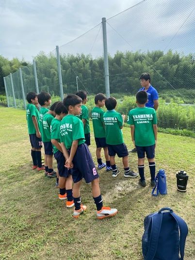 雨かと思えば降らず蒸し暑い中での試合でした。コーチから試合前にインターセプト、声をだすこと、 ディフェンスの距離感について、話がありました。インターセプトは頑張ってできていたけど その後パスがつながらなかったり同じことの繰り返しになっていたり勝ち抜く、走り抜く気持ちが 見えない試合もありました。でもこの暑い中でみんなの頑張る姿がみれて良かったです。 この練習試合で学んだことをまた次の試合にむけて生かせるようにみんなで力を合わせて練習頑張れ! 本日は蒸し暑い中、谷本コーチ、加藤コーチ、保護者の皆様お疲れ様でした。 | |||