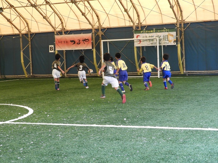 | コメント | 初めて対戦するチームとの交流試合でした。相手のチームはポジションが決まっていて、屋島だけがボールばかりに夢中になって団子状態になる事が多く、初戦から完敗。2試合目、コーチから初めてポジションを与えられ、なかなか理解出来ず、戸惑う場面も多々ありましたが、考える姿勢が時折見られました! 最後の試合では皆んなで1点を守りきり、1勝することが出来ました。今回は二年生がいつもより少なかった為、一年生が頑張っている姿がとても印象的でした!課題の多い試合でしたが、次に繋がる良い試合だったと思います。 石川コーチ、保護者の皆さん、寒い中お疲れ様でした。 | |||