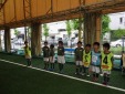 | コメント | 連日の猛暑が続き本日の最高気温は34.6度! 夏休み初日から絶好調の屋島U-8、U-7混合チーム。U-7のゴールも決まり、3戦3勝と大健闘、勝利の意識が定着してきた子供達の姿が印象に残る大会でした。みんなで攻めて、みんなで守る、ボールに対して誰かに任せるではなく、ボールを奪われたら取られた者が取り返しに行く!ボールを持ったらドリブルへ!何回かドリブル・パス・シュート・ゴールの連携が観られのも大変大きな変化でした。暑い中、谷本コーチ、保護者の皆様お疲れ様でした。 | |||