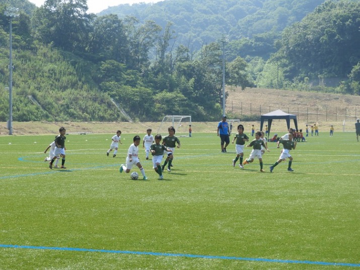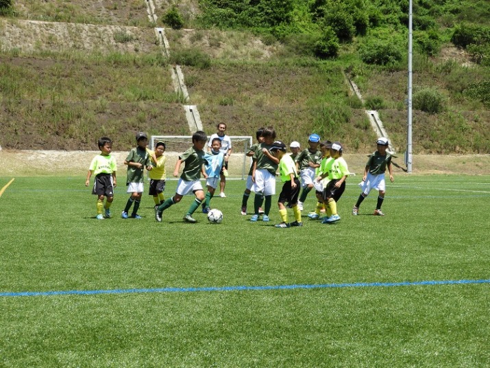 | コメント | 連日の猛暑が続き本日の最高気温は34.6度! 夏休み初日から絶好調の屋島U-8、U-7混合チーム。U-7のゴールも決まり、3戦3勝と大健闘、勝利の意識が定着してきた子供達の姿が印象に残る大会でした。みんなで攻めて、みんなで守る、ボールに対して誰かに任せるではなく、ボールを奪われたら取られた者が取り返しに行く!ボールを持ったらドリブルへ!何回かドリブル・パス・シュート・ゴールの連携が観られのも大変大きな変化でした。暑い中、谷本コーチ、保護者の皆様お疲れ様でした。 | |||