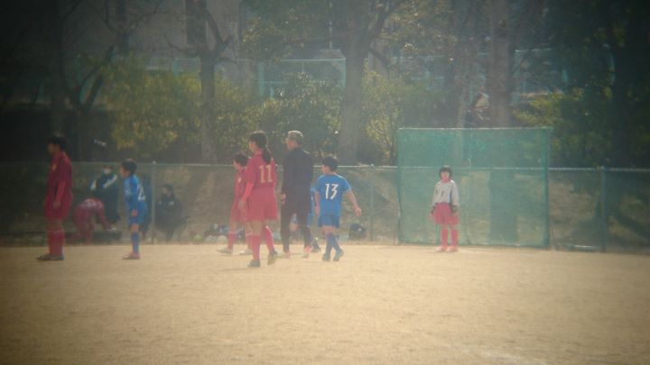相手の方が、体格のいい子が多く、恐縮してしまったのか、パスが思いどうりに回らず、ボールのあるところに固まってしまうこともありましたが、後半で、なんとか先制点を入れて、喜んでいたものの、すぐに、一点入れられてしまい、また、追加点も許してしまいました。試合終了前に、たまたま、シュートしたボールが、ゴールの枠から、相手のキーパーの額に当たり、オウンゴールで、引き分けになりました。