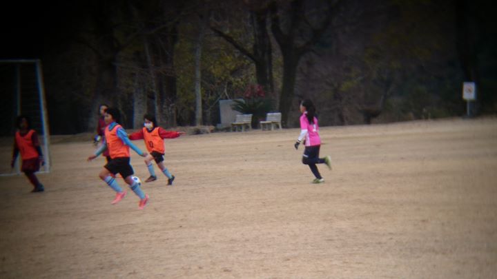 20分の前後半でやりました。始めは、声がよく出ていて、楽しそうで、ゴールキーパーを使いボールを慎